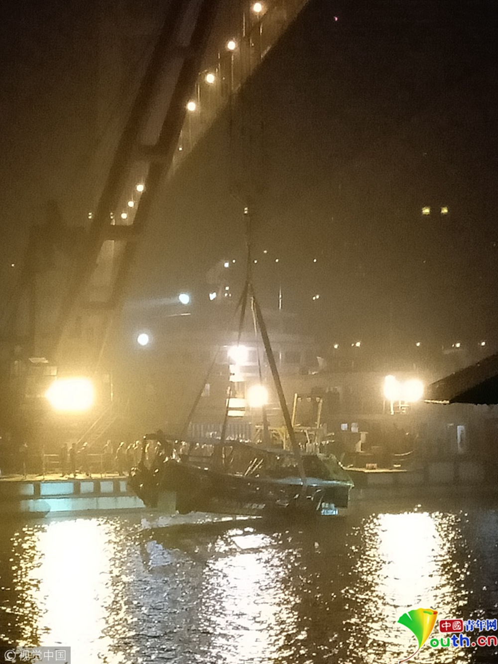 10月31日晚,重慶萬州長江二橋墜江公交車被打撈出水。記者在重慶萬州墜江公交車救援現(xiàn)場看見,公交車被四條繩索從四個(gè)方向包圍,車身明顯變形,車窗玻璃全部破裂。