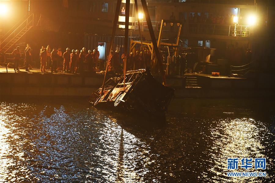 10月31日23時30分左右,記者在重慶萬州江面的打撈現(xiàn)場看到,隨著浮吊船的吊索緩緩提升,墜江的公交車被打撈出水面。 10月28日10時8分,重慶市萬州區(qū)一輛公交車行駛至長江二橋時,與一輛小轎車相撞后墜江。經公安機關初步核實,失聯(lián)人員15人。