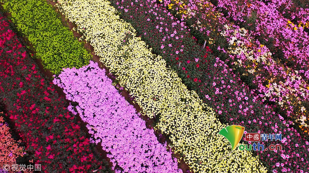 2018年11月1日,河南許昌,航拍的許昌華育花卉觀賞彩菊種植基地。