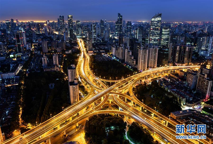 這是11月2日拍攝的上海延安高架路與南北高架路交匯處的立交橋。 首屆中國(guó)國(guó)際進(jìn)口博覽會(huì)即將在上海開幕。美麗的上海張開懷抱,迎接八方來(lái)客。 新華社記者 李鑫 攝