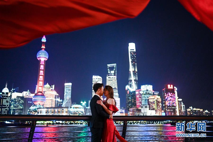 11月1日,一對(duì)青年男女在上海外灘拍攝婚紗照。首屆中國(guó)國(guó)際進(jìn)口博覽會(huì)即將在上海開幕。美麗的上海張開懷抱,迎接八方來(lái)客。 新華社記者 陳曄華 攝