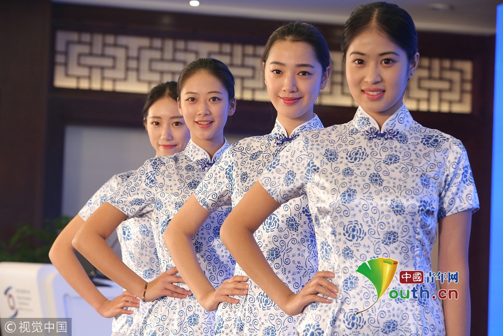 2014年11月17日,世界互聯網大會直播演練在浙江烏鎮(zhèn)舉行。來自浙江傳媒學院的大學生們,身著一襲青花瓷紋旗袍亮相,顯得分外嫵媚,引人注目。