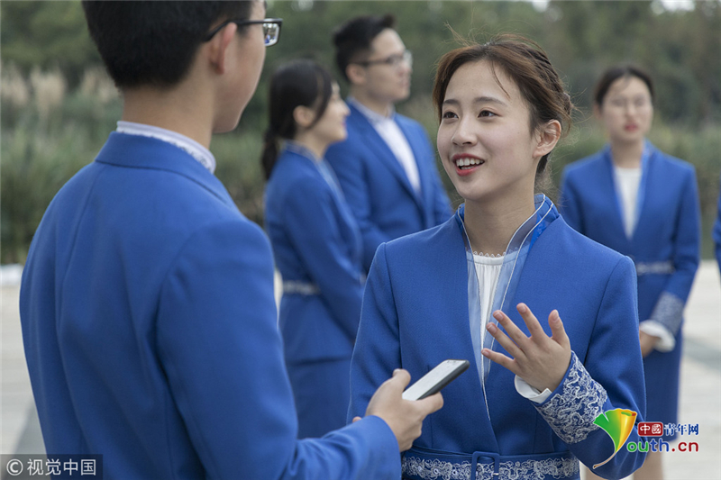 2018年11月5日,浙江嘉興,大會(huì)志愿者“小梧桐”爭(zhēng)分奪秒,在烏鎮(zhèn)展開緊張的實(shí)戰(zhàn)培訓(xùn)。阿凡提達(dá)/視覺中國(guó)