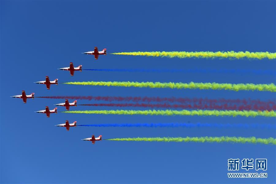 11月6日,中國空軍八一飛行表演隊(duì)在航展現(xiàn)場進(jìn)行飛行表演。當(dāng)日,第十二屆中國國際航空航天博覽會(huì)在珠海開幕。 新華社記者楊光攝
