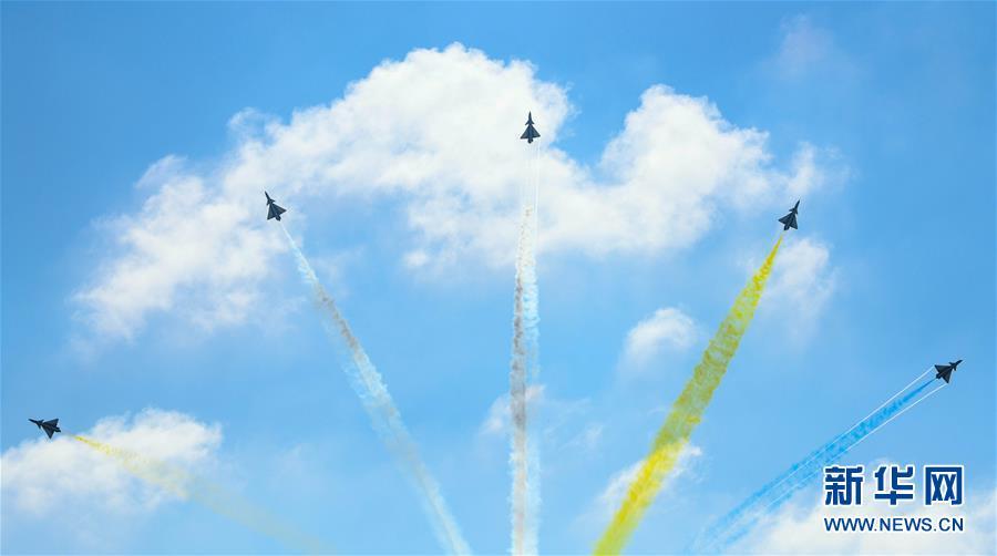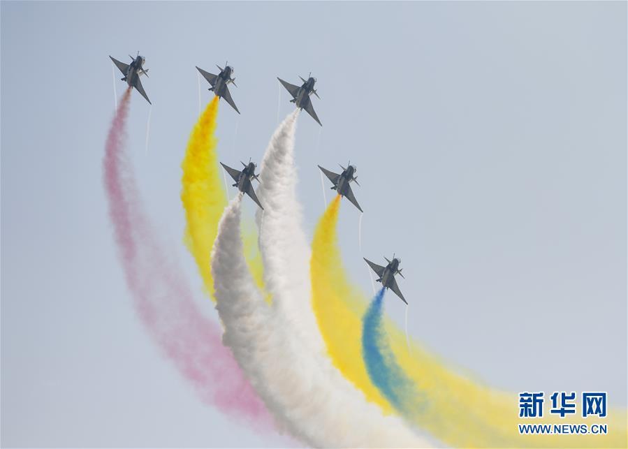 11月6日,中國空軍八一飛行表演隊(duì)在航展現(xiàn)場進(jìn)行飛行表演。當(dāng)日,第十二屆中國國際航空航天博覽會(huì)在珠海開幕。 新華社記者鄧華攝