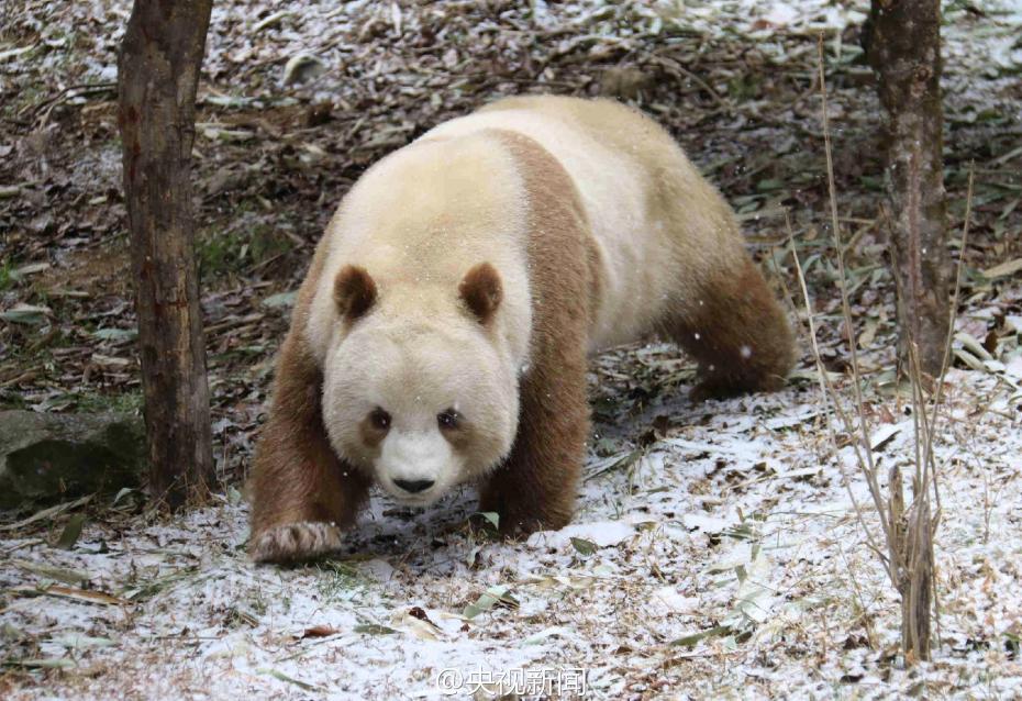 秦嶺大熊貓野化培訓(xùn)佛坪基地,7歲的棕色大熊貓七仔是目前全世界唯一能看到的棕色大熊貓活體。今年是它在基地過的第二個冬天,每逢下雪,七仔就興奮地滿園子跑,變身“雪花熊”。央視記者李志王志杰 圖片來源:央視新聞官方微博