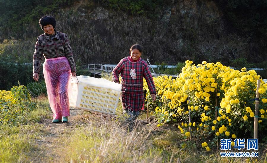 11月8日,婺源縣思口鎮(zhèn)農(nóng)戶(hù)在采摘皇菊。 新華社記者 胡晨歡 攝