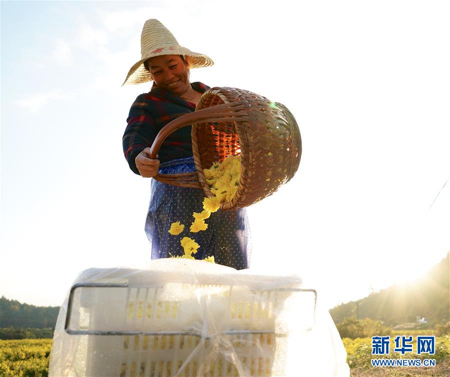 11月8日,婺源縣思口鎮(zhèn)農(nóng)戶(hù)在采摘皇菊。