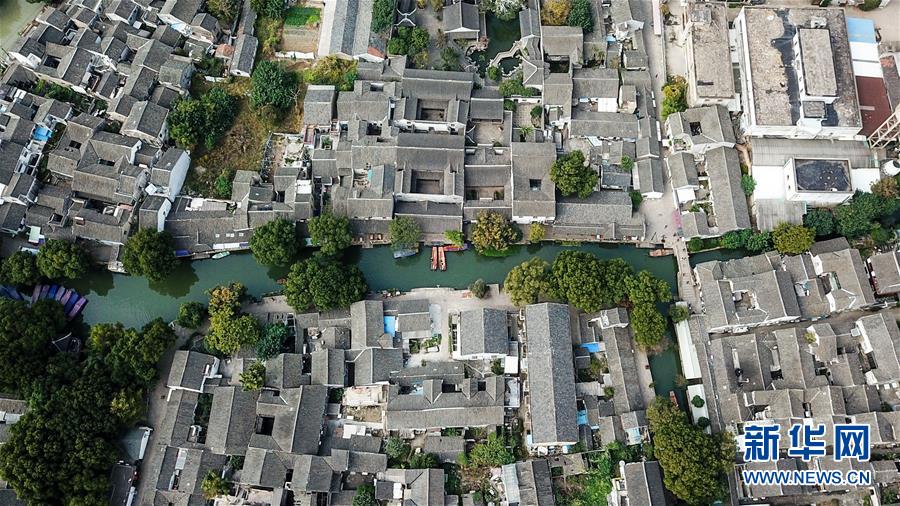 蘇州市吳江區(qū)七都鎮(zhèn)開弦弓村村貌(10月23日無人機拍攝)。近年來,開弦弓村形成了化纖紡織、針織衫編織和水產(chǎn)養(yǎng)殖三大產(chǎn)業(yè),2017年村集體收入268萬元,農(nóng)民人均可支配收入3萬多元。