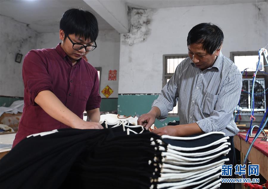 在蘇州市吳江區(qū)七都鎮(zhèn)開弦弓村,“90后”村民姚凌超(左)和父親姚玉坤在自家針織衫加工作坊里整理產(chǎn)品(10月23日攝)。近年來,開弦弓村形成了化纖紡織、針織衫編織和水產(chǎn)養(yǎng)殖三大產(chǎn)業(yè),2017年村集體收入268萬元,農(nóng)民人均可支配收入3萬多元。 新華社記者 季春鵬 攝