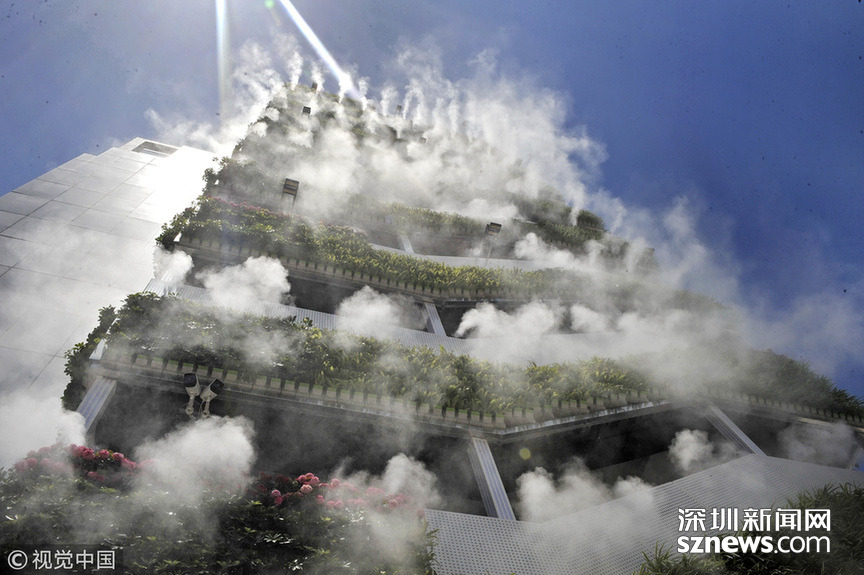 深圳新聞網(wǎng)訊 2018年6月10日,西安,高樓外長滿綠植,還縈繞著霧氣。這段只有6秒的短視頻在抖音火了,網(wǎng)友評論這是“第四代住房”,其實(shí)這是西安市眾創(chuàng)示范街區(qū)的一處安裝了智能霧森系統(tǒng)的西北最大戶外垂直綠化。