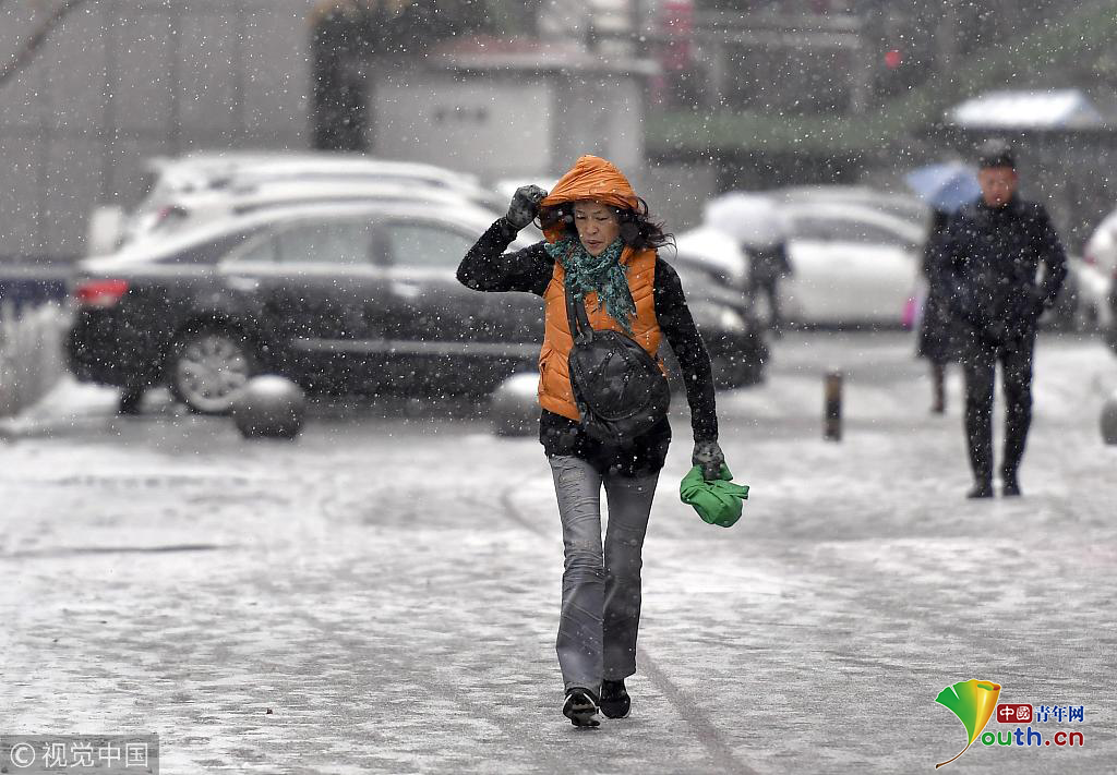 2018年11月12日,持續(xù)濃霧天氣的新疆烏魯木齊市,又迎來一場(chǎng)雨雪天氣,氣溫隨之驟降。圖為在風(fēng)雪中外出的民眾腳步匆匆。圖片作者:劉新
