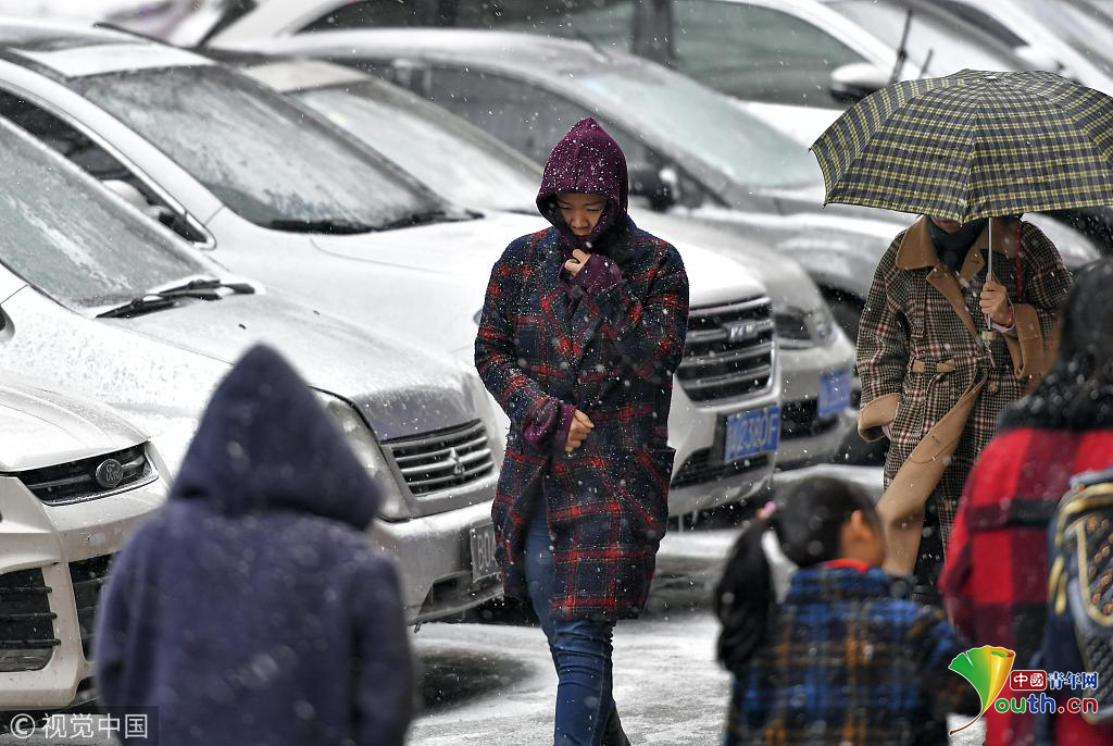 2018年11月12日,持續(xù)濃霧天氣的新疆烏魯木齊市,又迎來一場(chǎng)雨雪天氣,氣溫隨之驟降。圖為在風(fēng)雪中外出的民眾腳步匆匆。圖片作者:劉新