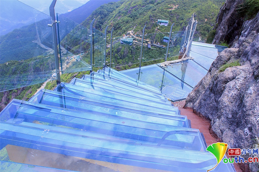 經(jīng)過一年的建設(shè),位于素有“嶺南第一險(xiǎn)峰”與“南粵小華山”之稱的廣東清遠(yuǎn)連山金子山,有一條玻璃天梯建成。下個(gè)月10日,玻璃天梯將正式對(duì)游客開放。