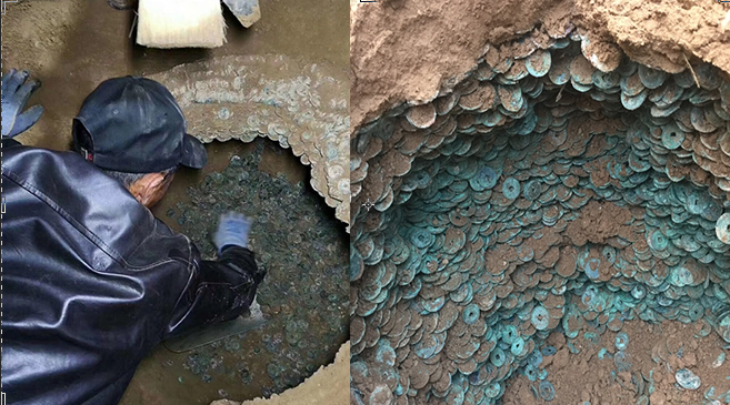 陜西渭南一工地發(fā)現(xiàn)古幣 共重920 ...