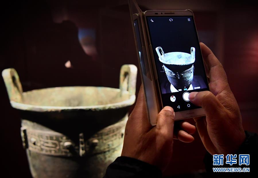 10月12日,參觀者在安陽博物館拍攝展品。目前,“鳳歸大邑商——殷墟婦好文物安陽故里展”正在安陽博物館展出,共展出文物474件。1976年被考古學家發(fā)現(xiàn)的婦好墓,是世界文化遺產(chǎn)、中國商代后期都城遺址——殷墟唯一保存完整的商代王室墓葬。新華社記者李安攝