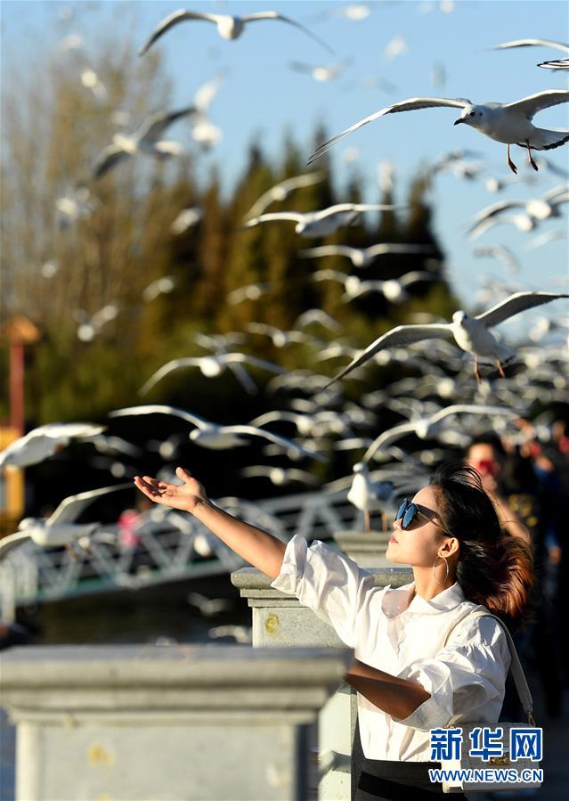 近日,云南省昆明市陽(yáng)光明媚、氣候宜人,不少市民和游客來(lái)到滇池大壩、大觀公園等地,觀賞前來(lái)越冬的紅嘴鷗。