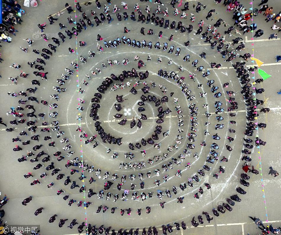 11月20日?qǐng)?bào)道,2018年11月19日,侗族同胞在參加貴州省從江縣慶云鎮(zhèn)“凍魚節(jié)”踩歌堂。(無人機(jī)拍攝)2018年11月19日,貴州省從江縣慶云鎮(zhèn)境內(nèi)的石姓侗族同胞迎來傳統(tǒng)一年一度的“凍魚節(jié)”,當(dāng)?shù)囟弊逋碇?jié)日盛裝舉行祭薩、踩歌堂、賽侗歌,慶祝豐收,祈福來年風(fēng)調(diào)雨順,五谷豐登。
