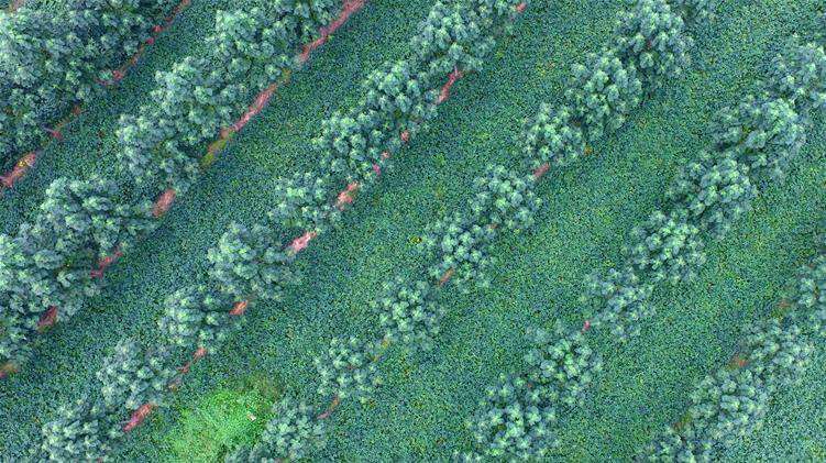 11月22日,在廣西柳州三江侗族自治縣八江鎮(zhèn)布央村,村民莫景凡在修剪茶樹。