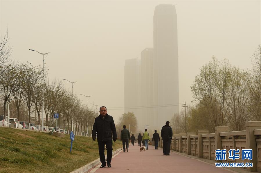 11月26日,在黃河蘭州段沿岸,市民在浮塵天氣中出行。 新華社記者 范培珅 攝
