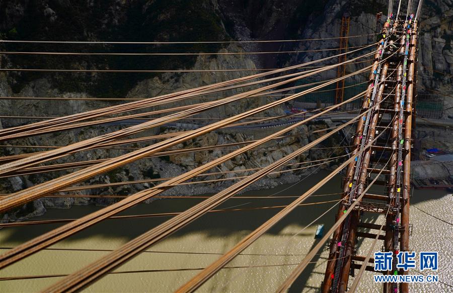 9月28日拍攝的川藏鐵路拉林段重點標(biāo)志性工程藏木特大橋合龍儀式現(xiàn)場。 當(dāng)日,隨著最后一節(jié)鋼管拱的對位和鎖定完畢,川藏鐵路拉林段藏木特大橋成功合龍,標(biāo)志著大橋主體結(jié)構(gòu)施工取得了關(guān)鍵性勝利。藏木特大橋由中國中鐵廣州局集團(tuán)承建,拱高112米,橋橫跨雅魯藏布江峽谷,水深66米。 新華社記者普布扎西攝