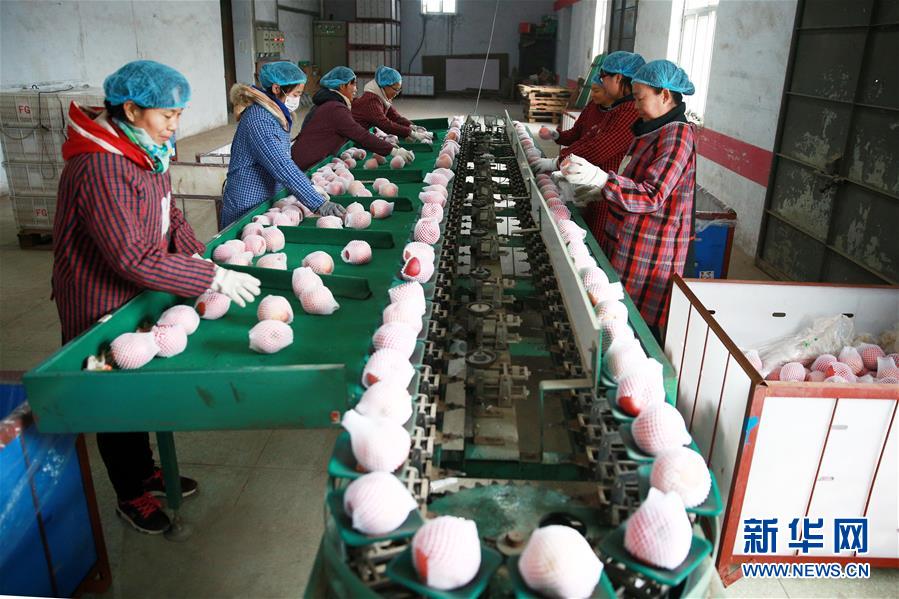11月26日,河北省內(nèi)丘縣一扶貧龍頭企業(yè)的員工在分揀蘋果。 近年來,河北省內(nèi)丘縣不斷推進(jìn)產(chǎn)業(yè)扶貧,探索“龍頭企業(yè)+貧困戶”利益鏈接機(jī)制,通過扶貧資金入股、進(jìn)廠打工等方式,提高貧困戶的產(chǎn)業(yè)參與度和受益度,帶動1300余戶貧困戶實現(xiàn)增收。 新華社記者 牟宇 攝