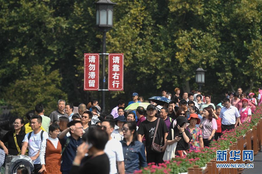 10月7日,杭州西湖風(fēng)景區(qū)的斷橋上游人絡(luò)繹不絕。為維持秩序,景區(qū)采取了雙向游客互相隔離的措施。當(dāng)日是國(guó)慶黃金周最后一天,眾多游客來(lái)到杭州西湖景區(qū)觀光游覽,熱度不減。據(jù)杭州市旅游委員會(huì)公布的數(shù)據(jù)顯示,從10月1日起截至10月7日12時(shí),國(guó)慶七天杭州市各景區(qū)(點(diǎn))接待游客總量達(dá)到1776.14萬(wàn)人次,其中西湖風(fēng)景名勝區(qū)管委會(huì)所屬公園景點(diǎn)共接待游客452.2萬(wàn)人次。新華社記者 黃宗治 攝