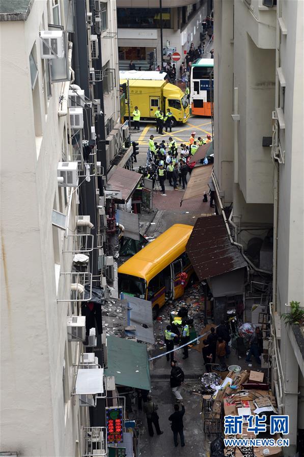 這是12月10日在香港北角拍攝的事故現(xiàn)場(chǎng)。 12月10日下午2時(shí)左右,香港北角發(fā)生車(chē)禍,一輛校巴沖上行人路。 新華社記者 盧炳輝 攝