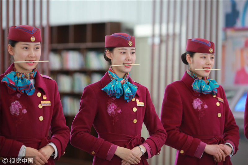2018年12月27日,四川成都,為備戰(zhàn)即將開(kāi)通的成雅鐵路,中國(guó)鐵路成都局集團(tuán)有限公司成都客運(yùn)段動(dòng)車二隊(duì)對(duì)成雅動(dòng)車的乘務(wù)人員進(jìn)行理論、形體、服務(wù)禮儀等內(nèi)容的培訓(xùn)。