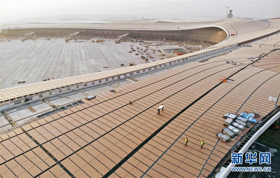 2019年1月1日,工人在北京大興國際機(jī)場工地冒著嚴(yán)寒施工(無人機(jī)拍攝)。 當(dāng)日是新年第一天,眾多勞動者忙碌在工作崗位上。 新華社記者 才揚(yáng) 攝