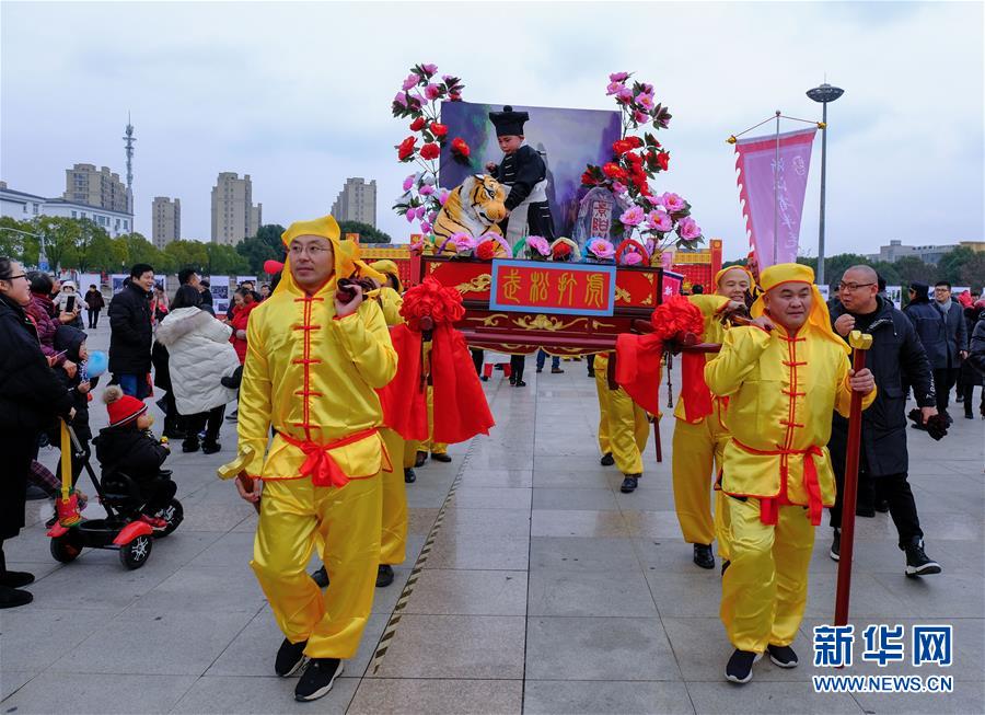 2019年1月1日在展演活動上拍攝的“抬閣”表演。2019年元旦,浙江省桐鄉(xiāng)市濮院鎮(zhèn)舉辦新年“非遺文化藝術(shù)節(jié)”活動,濮院鎮(zhèn)下屬多個鄉(xiāng)村的傳統(tǒng)美食制作、手工藝品、非遺文化表演等鄉(xiāng)村特色非遺項目在濮院鎮(zhèn)中心廣場進行集中展示展演。新華社記者 徐昱 攝