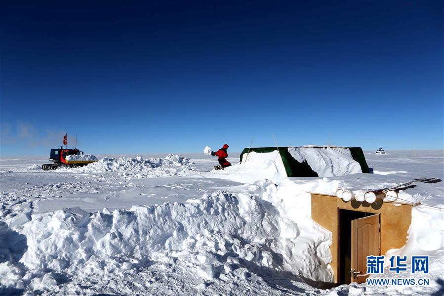 科考隊(duì)員清理深冰芯房周圍的積雪(1月6日攝)。 新華社記者 劉詩平 攝