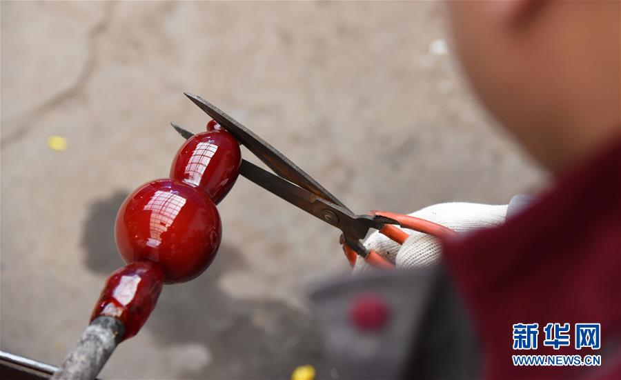 1月12日,孫云毅在制作雞油黃琉璃藝術(shù)品。 新華社記者王凱攝