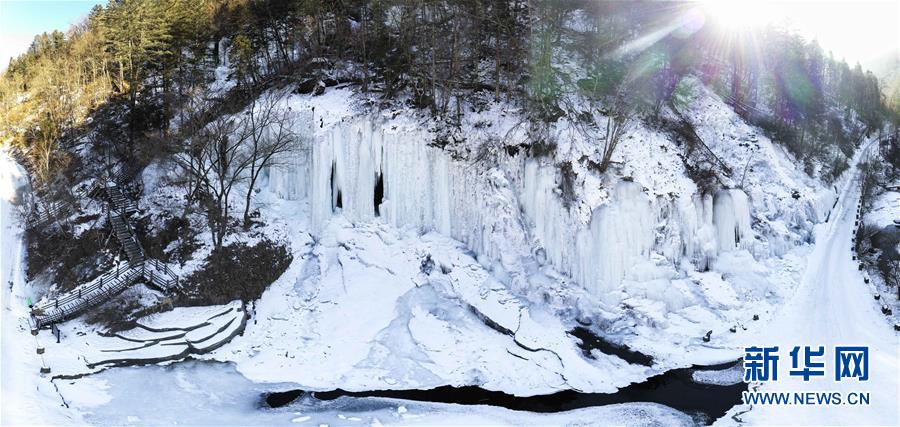 位于吉林省長白縣的十五道溝望天鵝風(fēng)景區(qū),屬長白山余脈。這里生態(tài)原始,古樹參天,瀑飛泉涌,怪石嶙峋,素有“北方九寨溝”的美譽(yù)。 冬日里,在形態(tài)各異的巖墻、巖柱間流淌的溪水因低溫凝固,仿若時(shí)間凍結(jié),一切流動(dòng)的美便以湍急之勢凝于石壁,形成了半冰半水、亦靜亦動(dòng)的冰瀑景觀,盡顯大自然的鬼斧神工。 新華社記者張楠攝