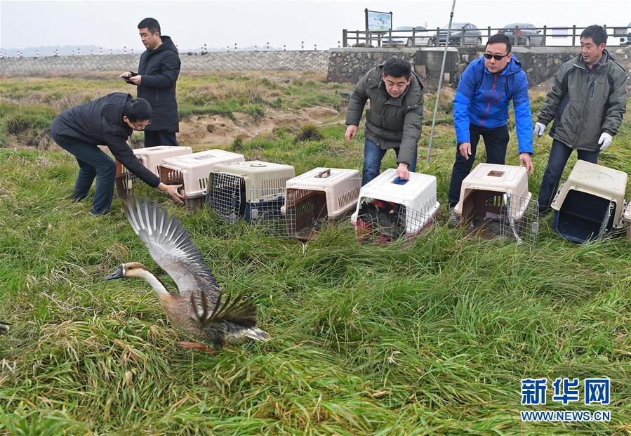 當(dāng)日,江西省野生動植物救護繁育中心、天津市野生動物救護馴養(yǎng)繁殖中心在江西鄱陽湖國家級自然保護區(qū)將16只被救治的珍稀候鳥成功放飛。其中1只東方白鸛為國家一級保護動物,2只大天鵝、3只鴛鴦為國家二級保護動物。