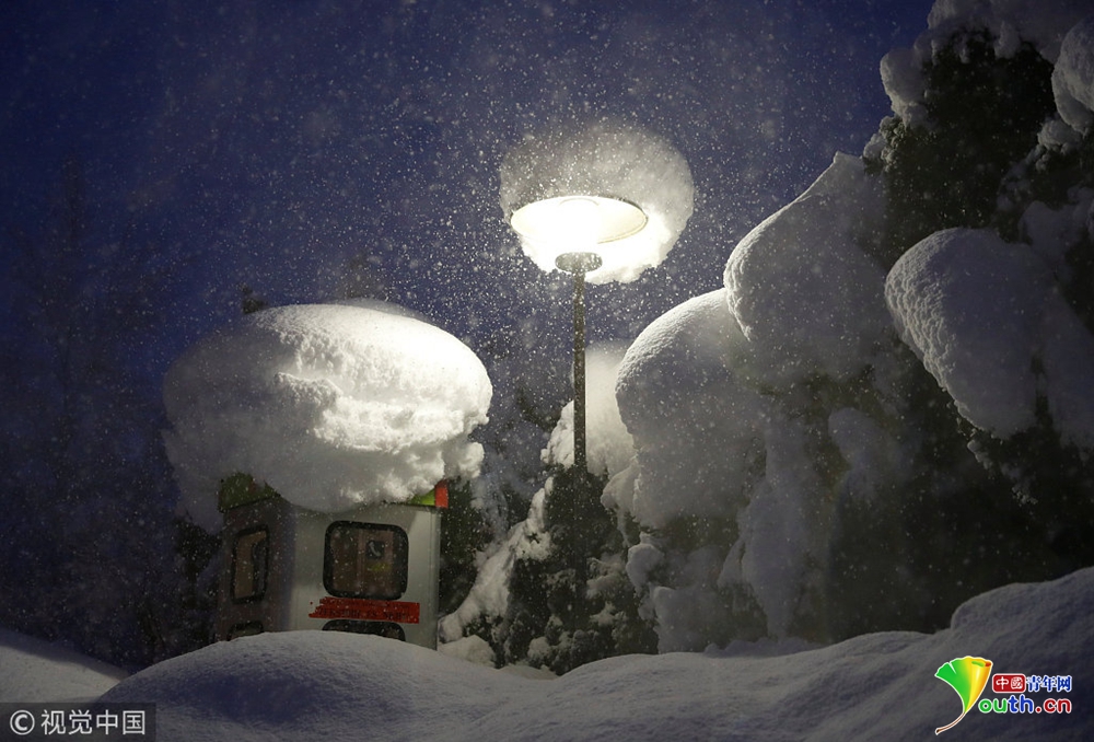 奧地利暴風(fēng)雪持續(xù) 公交車(chē)站被積雪掩埋
