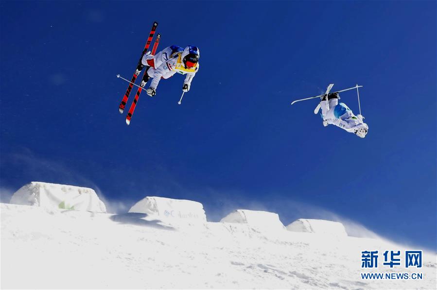 這是運(yùn)動員在張家口市崇禮區(qū)太舞滑雪場參加自由式滑雪雪上技巧世界杯比賽(2018年12月16日攝)。
