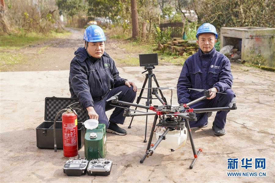 1月16日,噴火清障無人機(jī)的研發(fā)負(fù)責(zé)人何濤(右)和同事晏新展示噴火清障無人機(jī)。 1月16日,經(jīng)過3年多的研發(fā)和測試,重慶首臺噴火清障無人機(jī)在國網(wǎng)重慶永川供電公司無人機(jī)班正式投用。這臺多旋翼無人機(jī),通過搭載帶有燃料箱、油泵、自動點(diǎn)火裝置的噴火吊艙任務(wù)模塊,可以對影響高空電力線路安全的飄掛物進(jìn)行定點(diǎn)障礙清除作業(yè)。 據(jù)噴火清障無人機(jī)研發(fā)負(fù)責(zé)人何濤介紹,過去高空清除異物主要靠人工進(jìn)行,為保證安全經(jīng)常需要停電作業(yè),因此他們結(jié)合實(shí)際工作經(jīng)驗(yàn)和高空電力線路的自身特點(diǎn),設(shè)計和制造出了噴火清障無人機(jī)。2018年測試期間,國網(wǎng)重慶永川供電公司無人機(jī)班在多種環(huán)境下成功執(zhí)行了50多次高空電力線路清障作業(yè)。 新華社記者 劉潺 攝