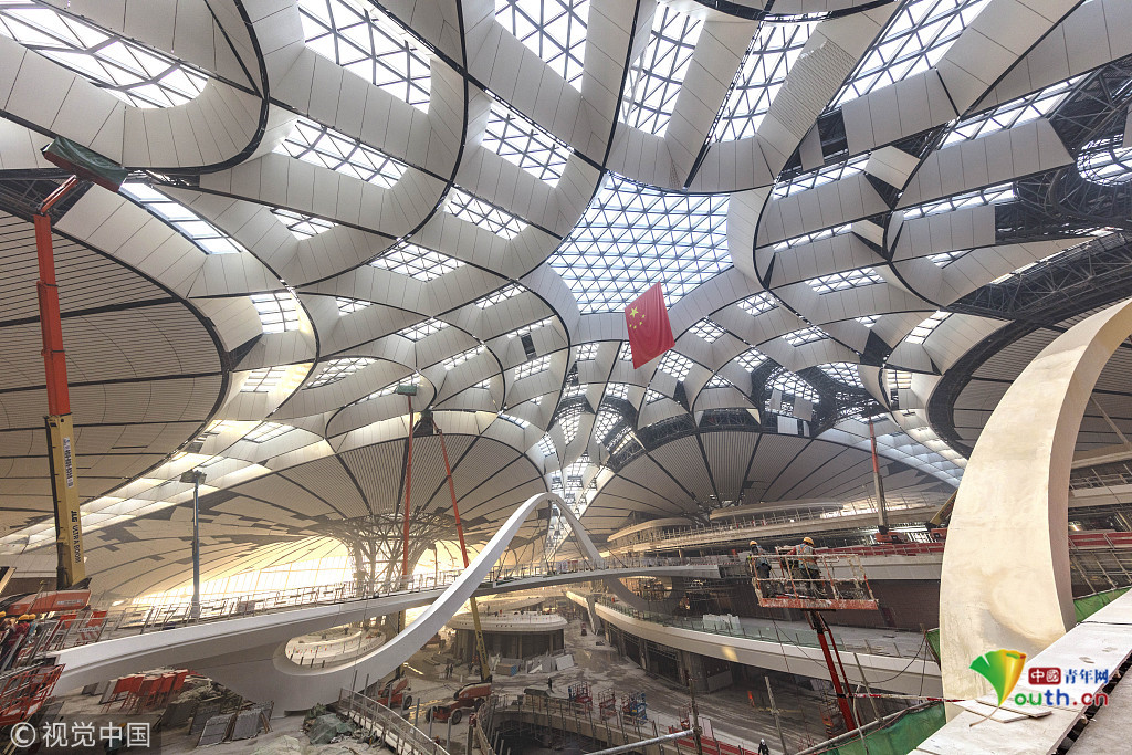 2018年12月19日,北京大興國際機場航站樓的室內(nèi)裝修正在推進中。視覺中國