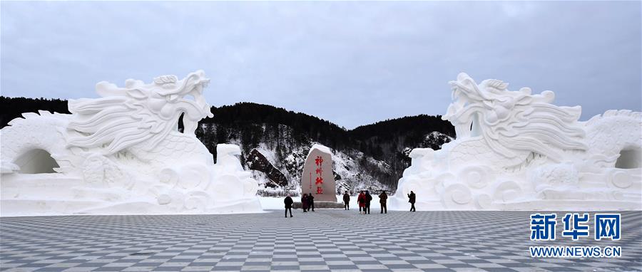 1月24日,在黑龍江省漠河市北極村,游客在神州北極廣場游玩。新華社記者王毓國攝