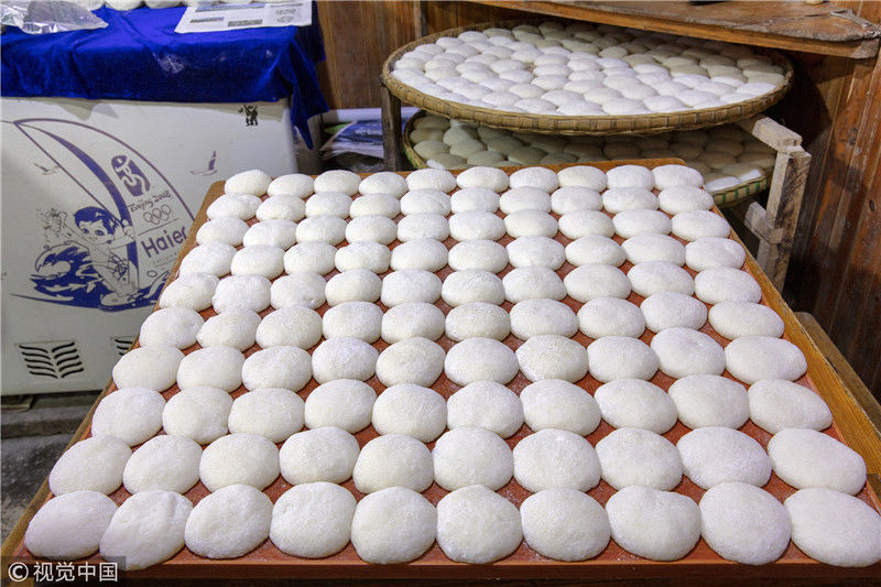 2019年1月26日,重慶中山古鎮(zhèn),880桌“千米長宴”5萬人共品年味。街坊們在頭天就開始準備各種菜肴與小吃。