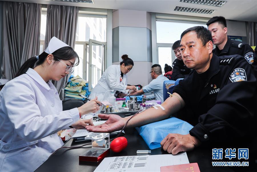 2月24日,在錫林郭勒盟中心血站,內(nèi)蒙古錫林郭勒邊境管理支隊(duì)民警在獻(xiàn)血。 內(nèi)蒙古自治區(qū)錫林郭勒盟“2·23”重大事故傷者正在錫林郭勒盟醫(yī)院、錫林郭勒盟蒙醫(yī)醫(yī)院接受救治。因用血需求量大,當(dāng)?shù)匮獛?kù)庫(kù)存一度低于警戒線。在當(dāng)?shù)卣h下,各單位職工、市民紛紛前往錫林郭勒盟中心血站獻(xiàn)血。截至24日16時(shí),已有220余名志愿者完成獻(xiàn)血,采集全血6.8萬(wàn)毫升,機(jī)采血小板9個(gè)治療量。 新華社記者 劉懿德 攝
