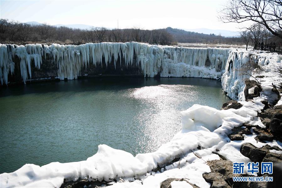 這是吊水樓瀑布的冰瀑景觀(2月25日攝)。 去冬今春以來,黑龍江省鏡泊湖的吊水樓冰瀑景色壯觀,吸引許多游人前來觀賞。 新華社記者 王建威 攝