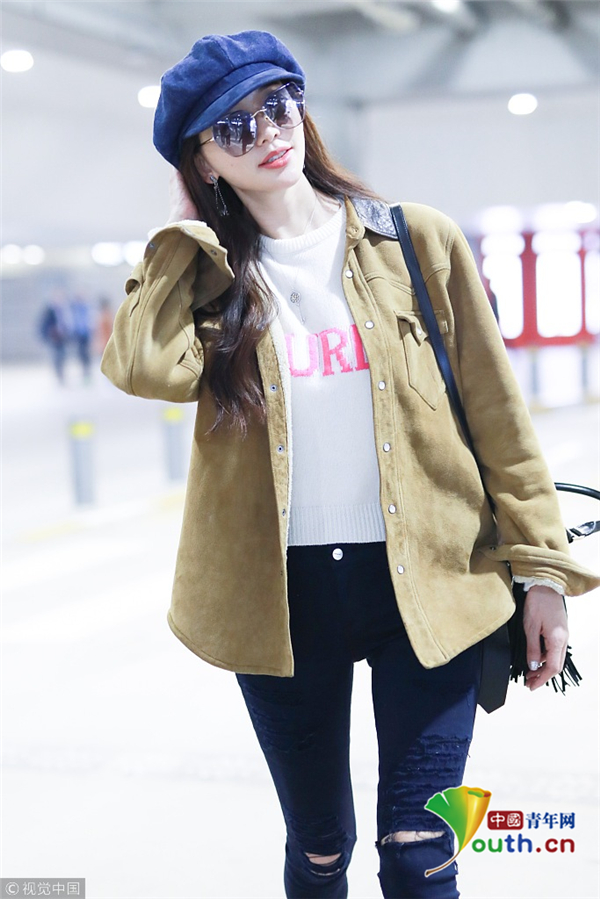 林志玲毛衣配破洞仔褲秀美腿 對鏡甜笑溫柔揮手