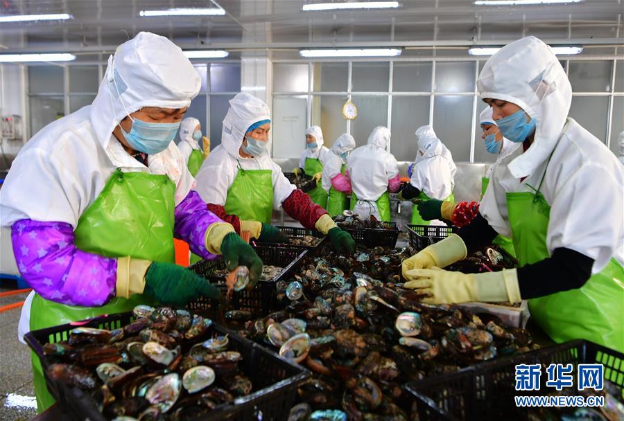 4月18日,工人在連江縣筱埕鎮(zhèn)一家鮑魚出口加工企業(yè)加工鮑魚。