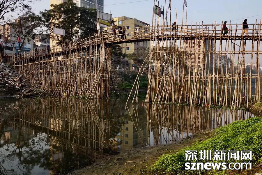 孟加拉國(guó)的大多數(shù)國(guó)土為低海拔平原,多洪水,每到雨季,各地一片汪洋,居住在地勢(shì)較高處的居民與外界和親友的聯(lián)系依賴(lài)就地取材、造價(jià)低廉的竹橋。李仁奇攝