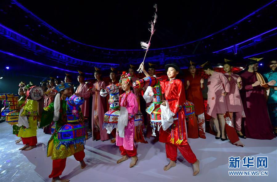 4月27日,小模特身穿民族服飾展示土樓當(dāng)?shù)氐姆俏镔|(zhì)文化遺產(chǎn)竹馬戲。 當(dāng)日,土樓光語國際時(shí)尚大秀在福建省南靖縣的土樓裕昌樓內(nèi)舉行。這場融匯文化、時(shí)尚與旅游元素的大秀,通過傳統(tǒng)與時(shí)尚的有機(jī)融合,展現(xiàn)南靖土樓及文化的魅力和風(fēng)采。 新華社記者魏培全攝