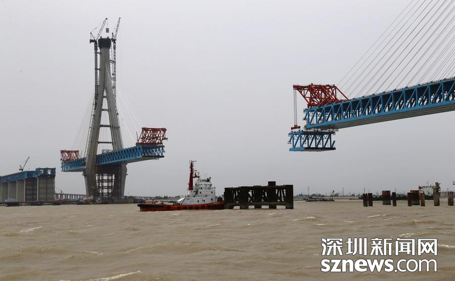 滬通長江大橋主航道橋首個鋼梁段即將合龍