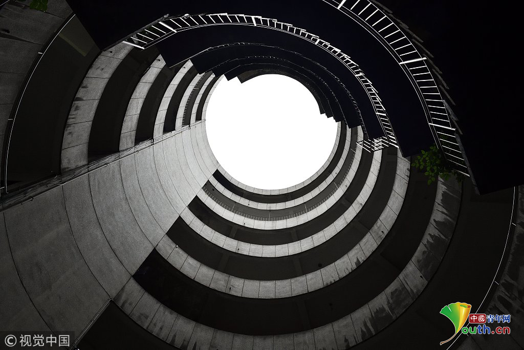 2018年12月11日,重慶紅旗河溝汽車站辦公大樓。八層的圓筒型轉(zhuǎn)轉(zhuǎn)樓,站在樓里往上望,可以看見碗口大的天空。圖片作者:尋常