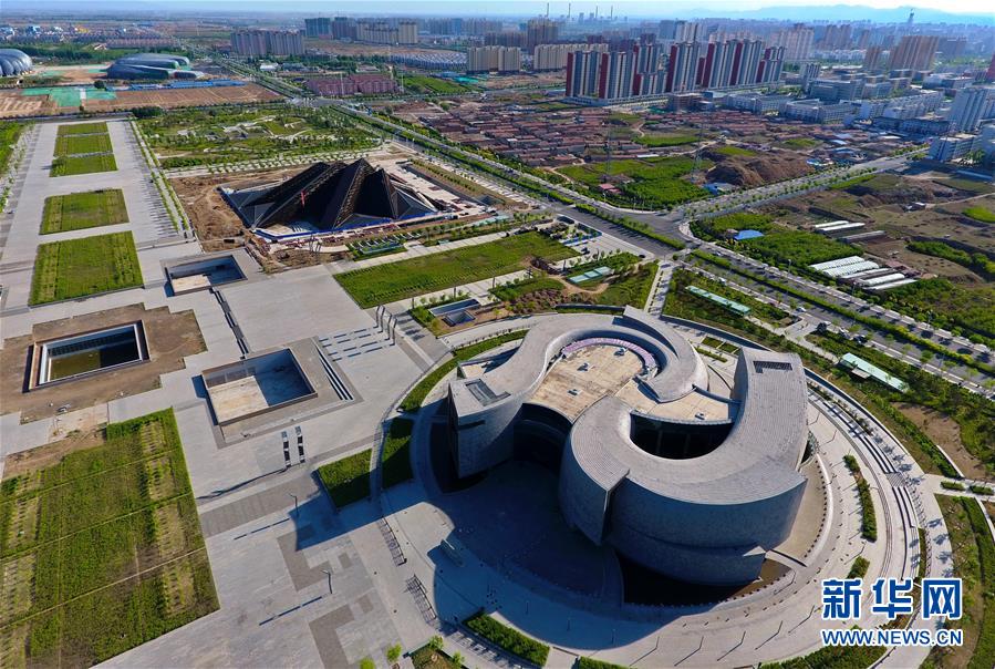這是2017年5月17日無人機拍攝的大同市博物館(前)和美術(shù)館及周邊景色。新華社記者 曹陽 攝